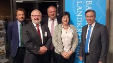 ERH-Delegation auf der Bayerischen Landkreisversammlung in Neunburg vorm Wald Der Landkreis Erlangen-Höchstadt zeigt Flagge: Landrat Alexander Tritthart sowie die Fraktionsvorsitzenden Walter Nussel (CSU), Andreas Hänjes (SPD), Elke Weis (FDP) und Wolfgang Hirschmann (Bündnis 90/ DIE GRÜNEN) waren auf der Bayerischen Landkreisversammlung für den Landkreis vor Ort im oberpfälzischen Neunburg vorm Wald.